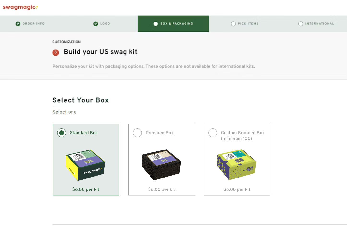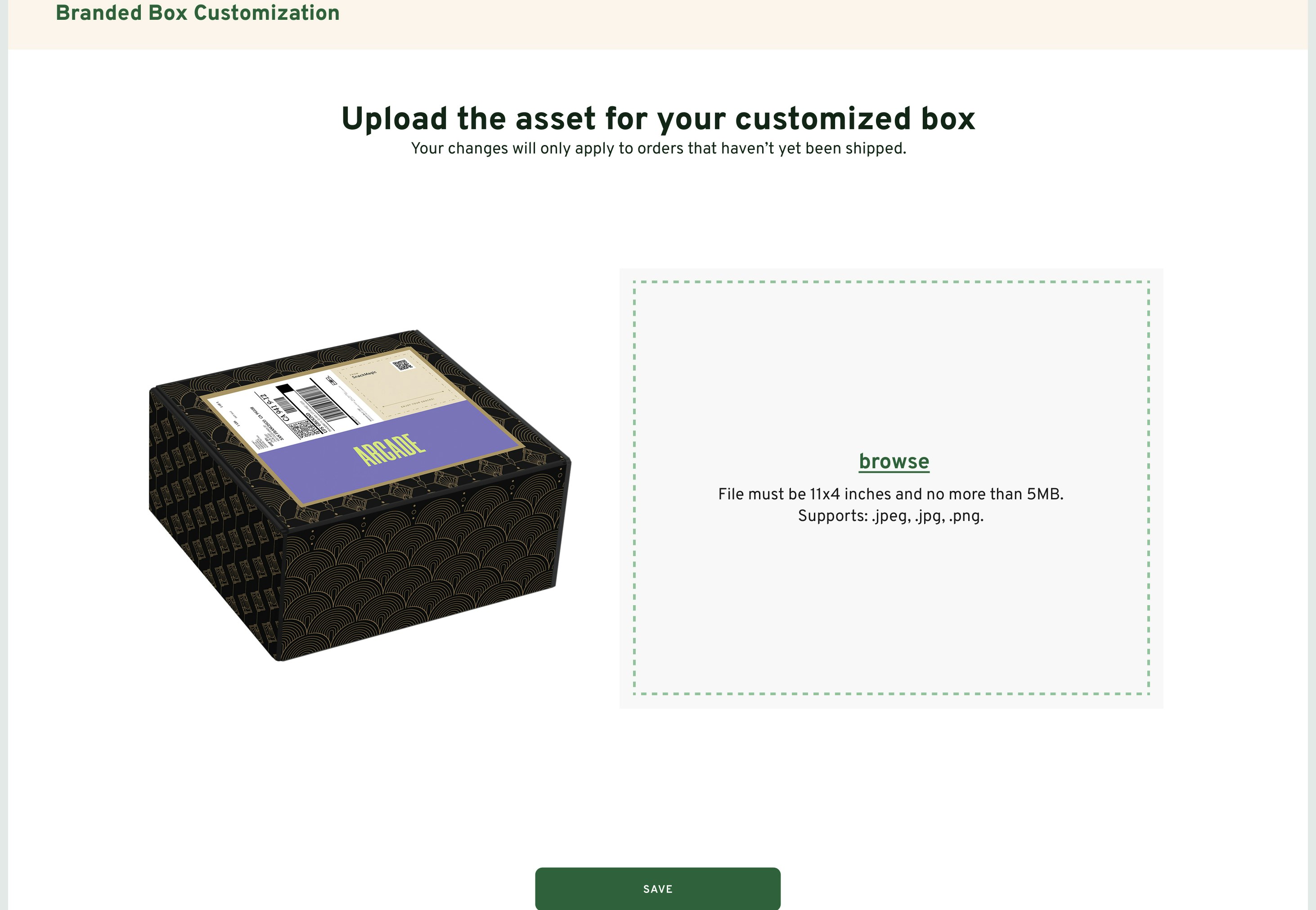 Upload the asset for your customized box from the Swag Dashboard once you have placed your order.