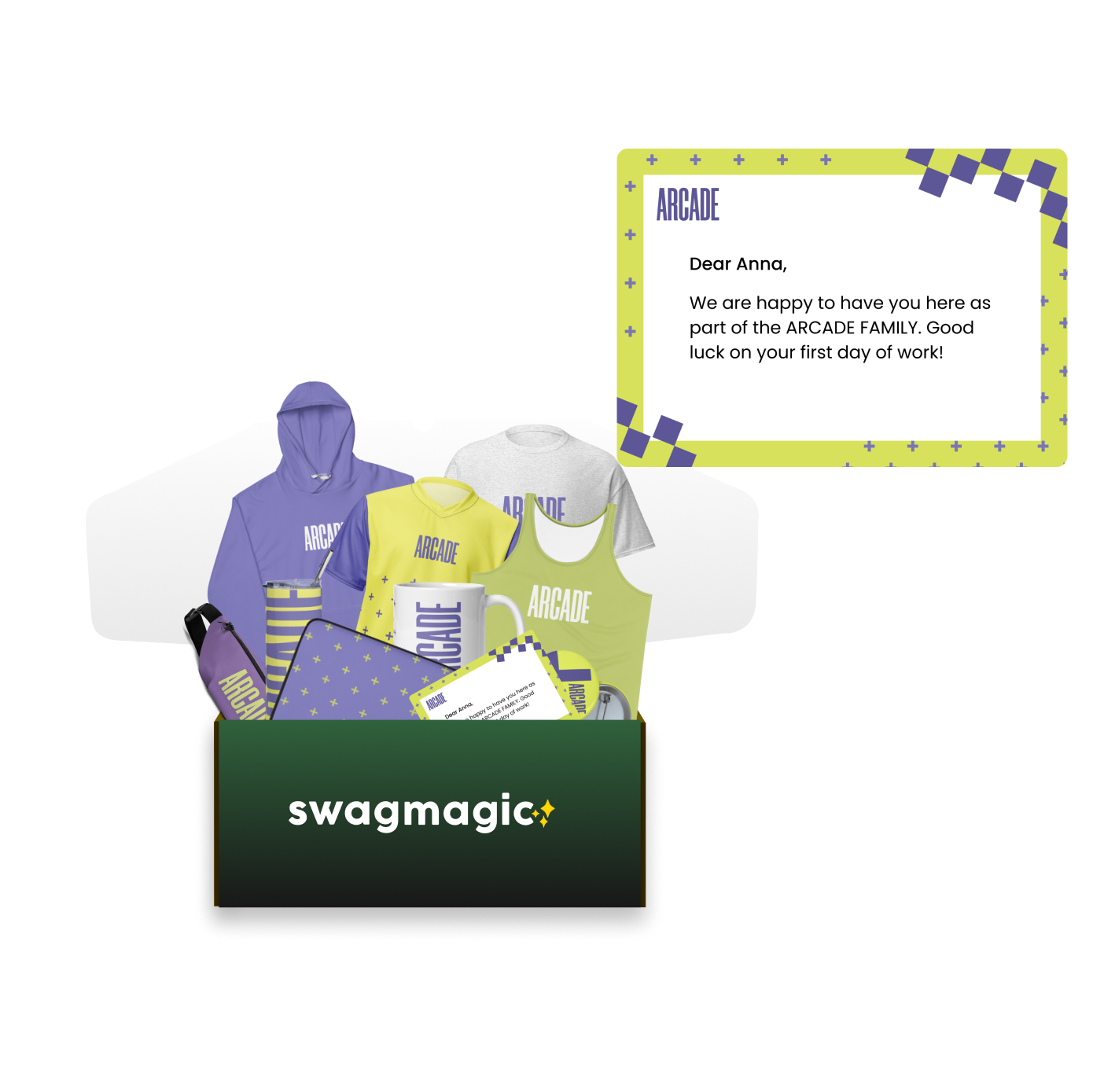 Yes. We can add branded notecard, swag, or even include your logo on the notecard that goes inside the kit/box. Please contact us at hi@swagmagic.com and we can help you with customizations.