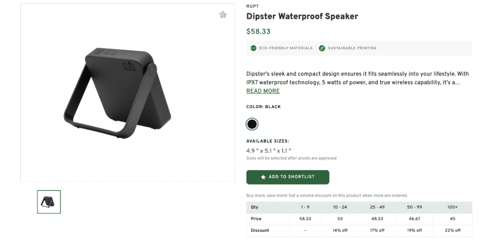 An affordable option that doesn’t compromise on sound quality. The compact design makes it perfect for desk use, while the custom imprint area ensures your logo stands out. Great for bulk orders, it features reliable connectivity and good battery life. The portable size and easy setup make it an excellent choice for large team distributions.