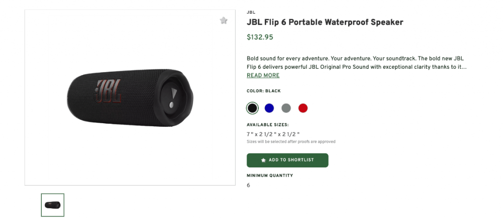 When it comes to high-quality sound, this waterproof speaker stands at the top of our selection. Perfect for corporate events, the JBL Flip 6 features a custom imprint area that makes your company logo pop. The portable design goes anywhere your team does, while the battery delivers impressive playback time on a single charge. Its rugged construction makes it great for both indoor and outdoor use.