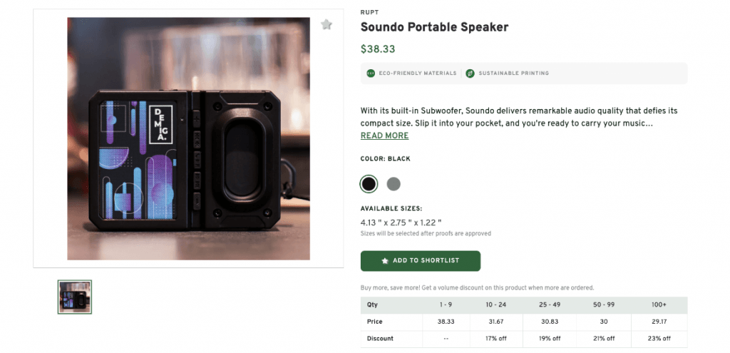 A sleek option that delivers modern style at an affordable price point. The design provides excellent custom branding opportunities while maintaining professional aesthetics. Features include quality sound output and reliable connectivity, making it perfect for corporate gifting. The compact size ensures it fits any workspace.