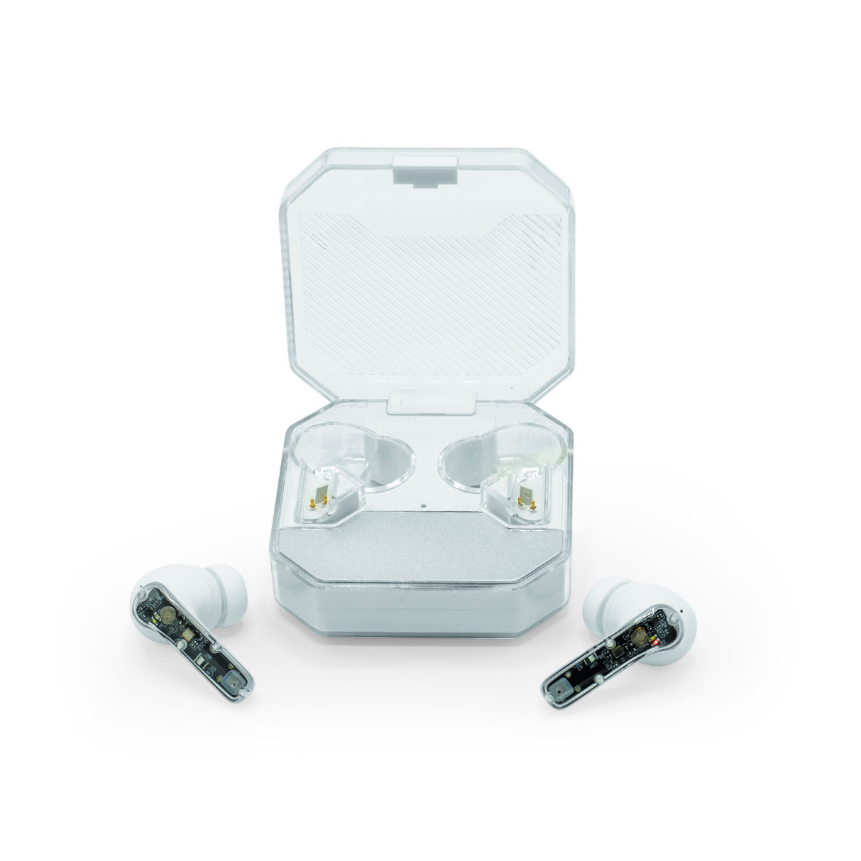 Make your Ghostbuds truly yours with our customization options. The transparent earbuds feature a removable clear front plate that can be personalized using DIGITAL UV printing. This decoration method allows for vibrant, high-resolution designs that showcase your logo or artwork beautifully against the transparent background. Perfect for creating a distinctive branded tech accessory that recipients will use daily.