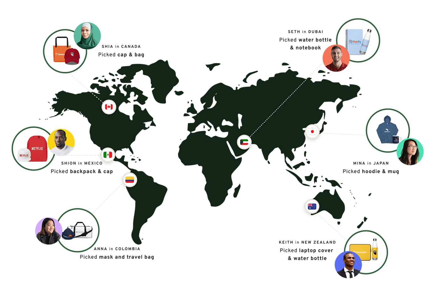 Curated boxes will make your life so much easier! We’ll always gather their physical address and can also gather their apparel sizes and give them the choice between several items.