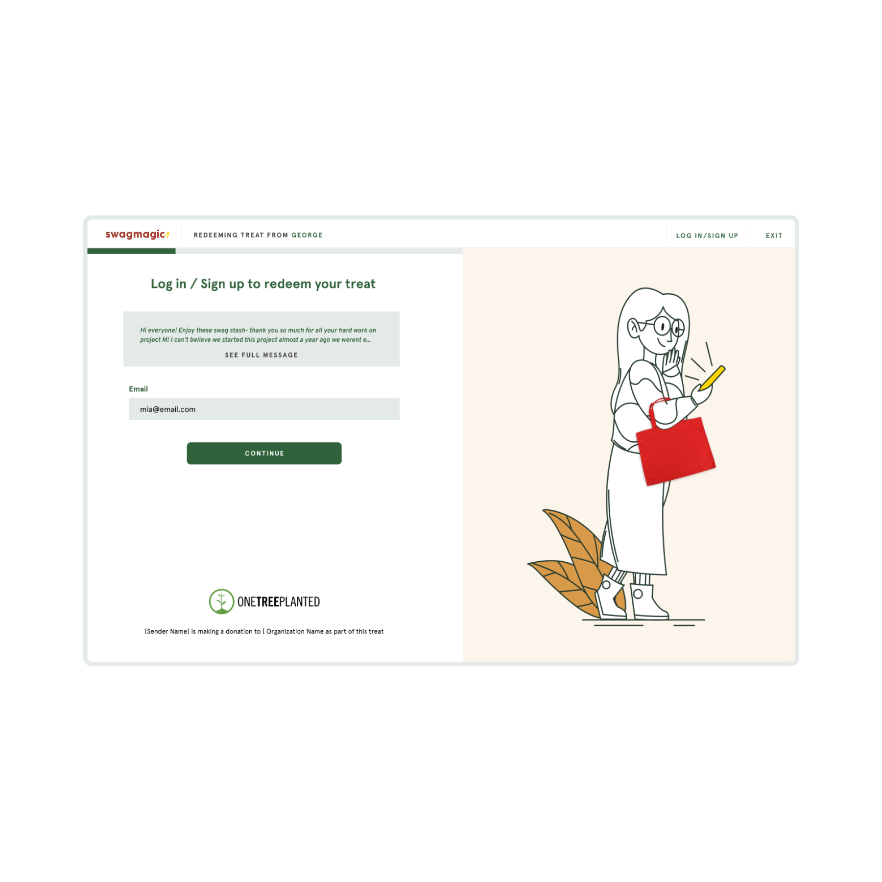 When recipients open the redemption link, they will see that a donation was made to your chosen organization.