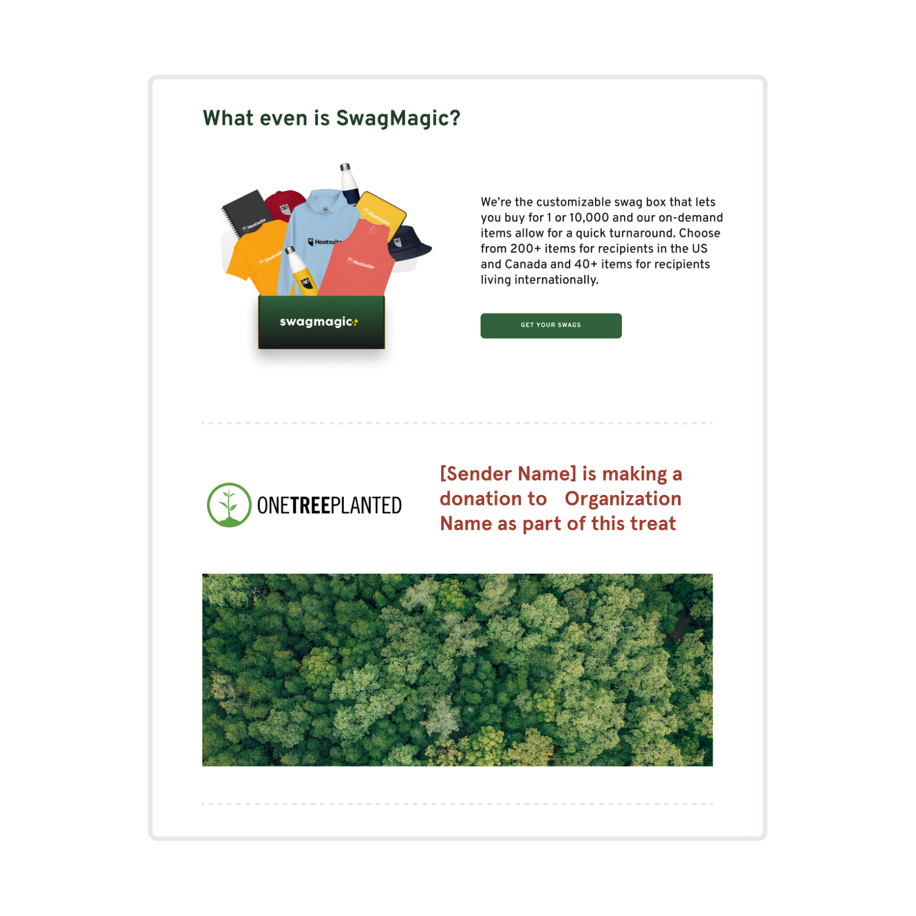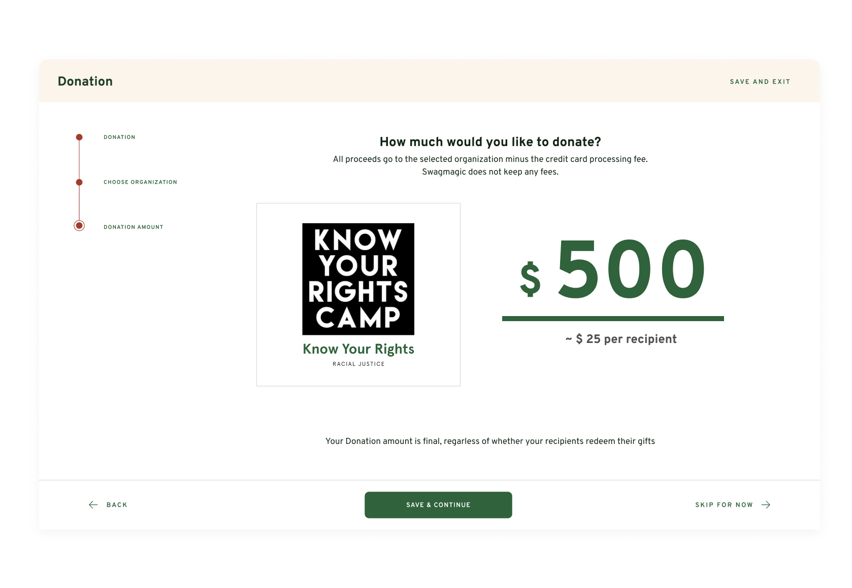 Start your swag order and select 'yes' when prompted to make a donation for every redemption.