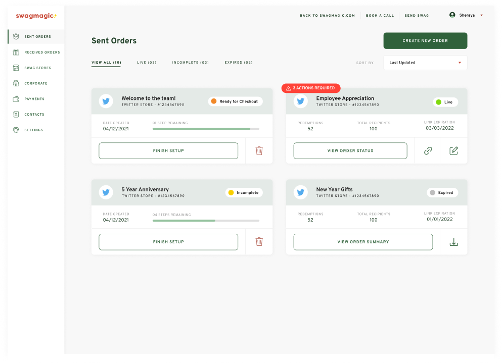 4. Approve or reject the orders from your Swag Dashboard