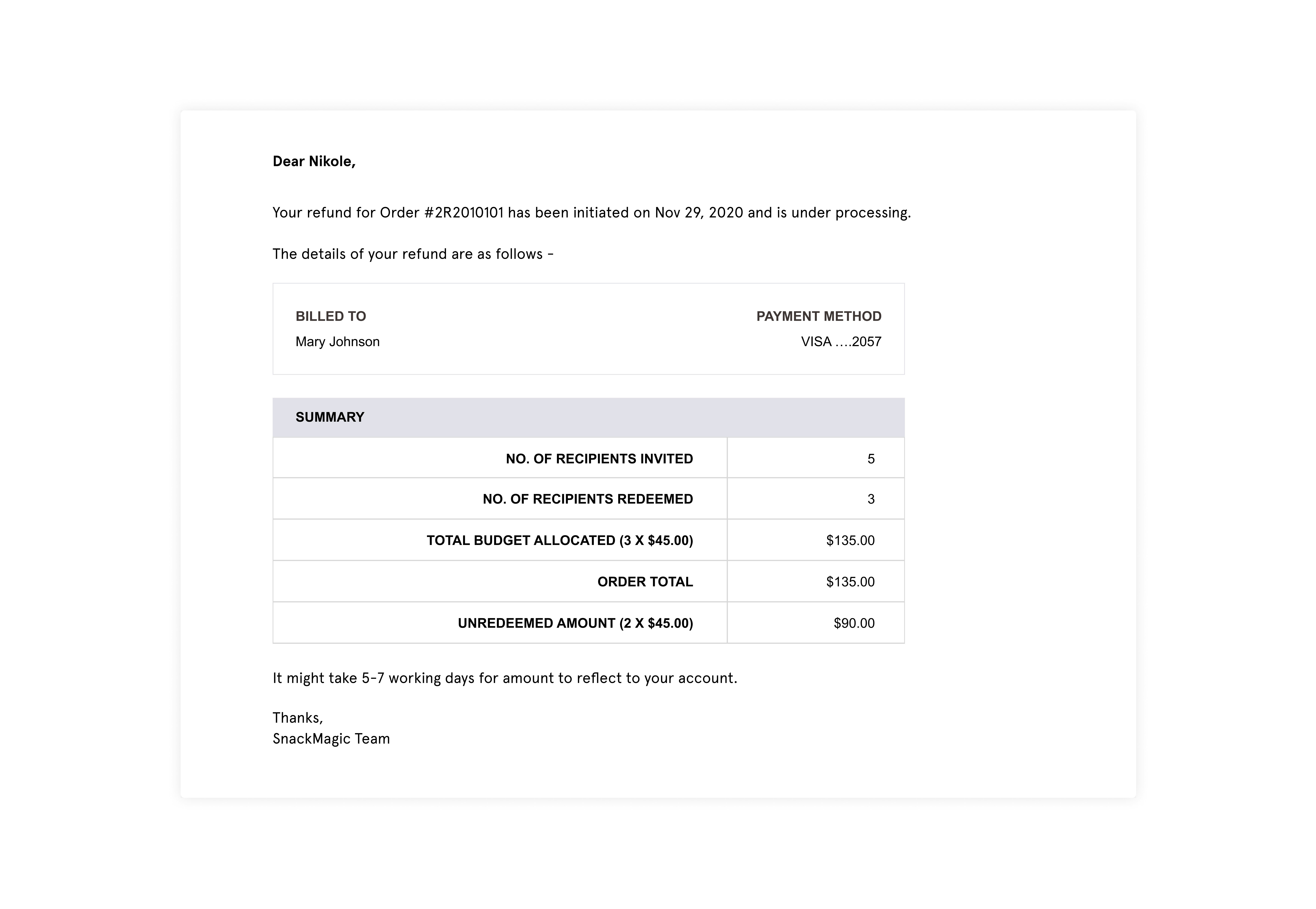 You’ll see the names and emails of those recipients that have redeemed your gift, but the orders don’t get fulfilled until you approve them. You only pay for approved orders.
