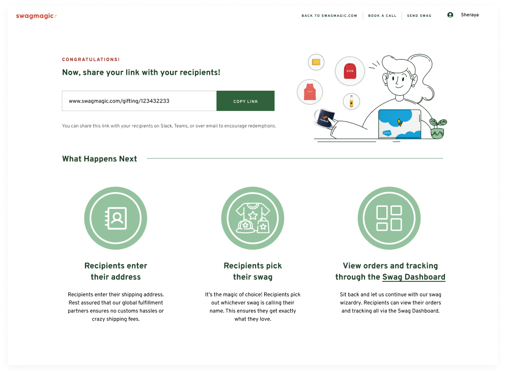 2. Your unique swag gets its own unique link