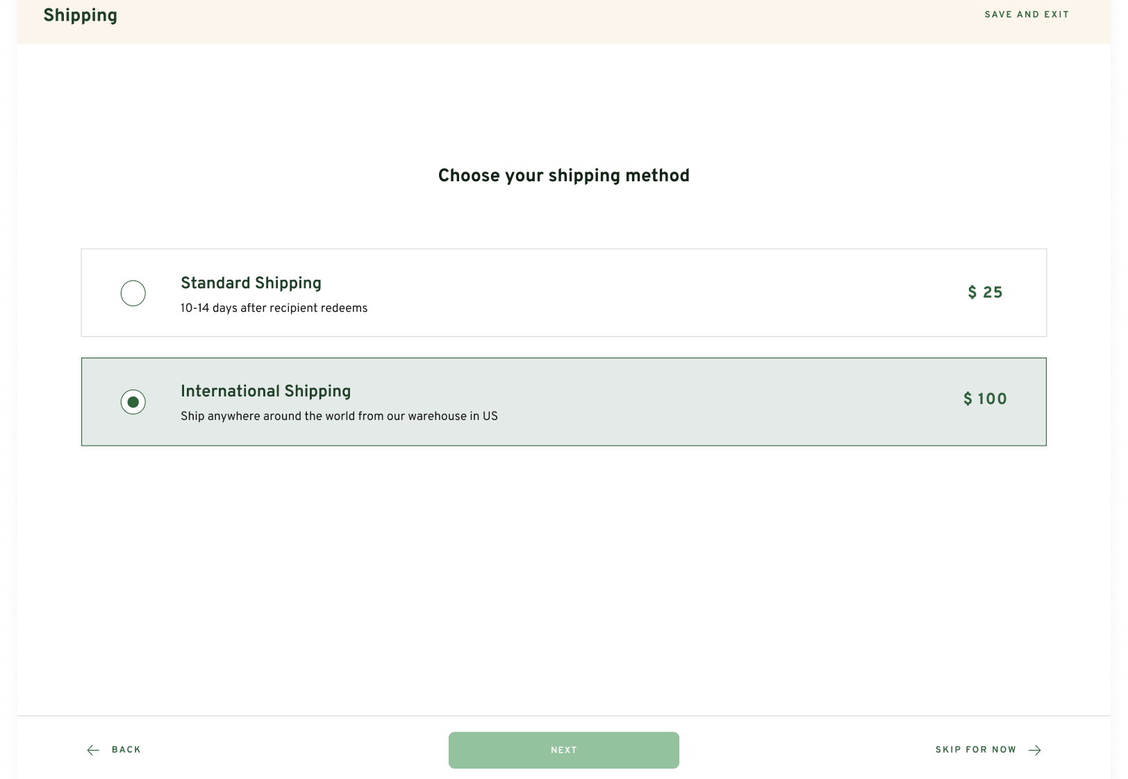Choose the rush swag shipping type
