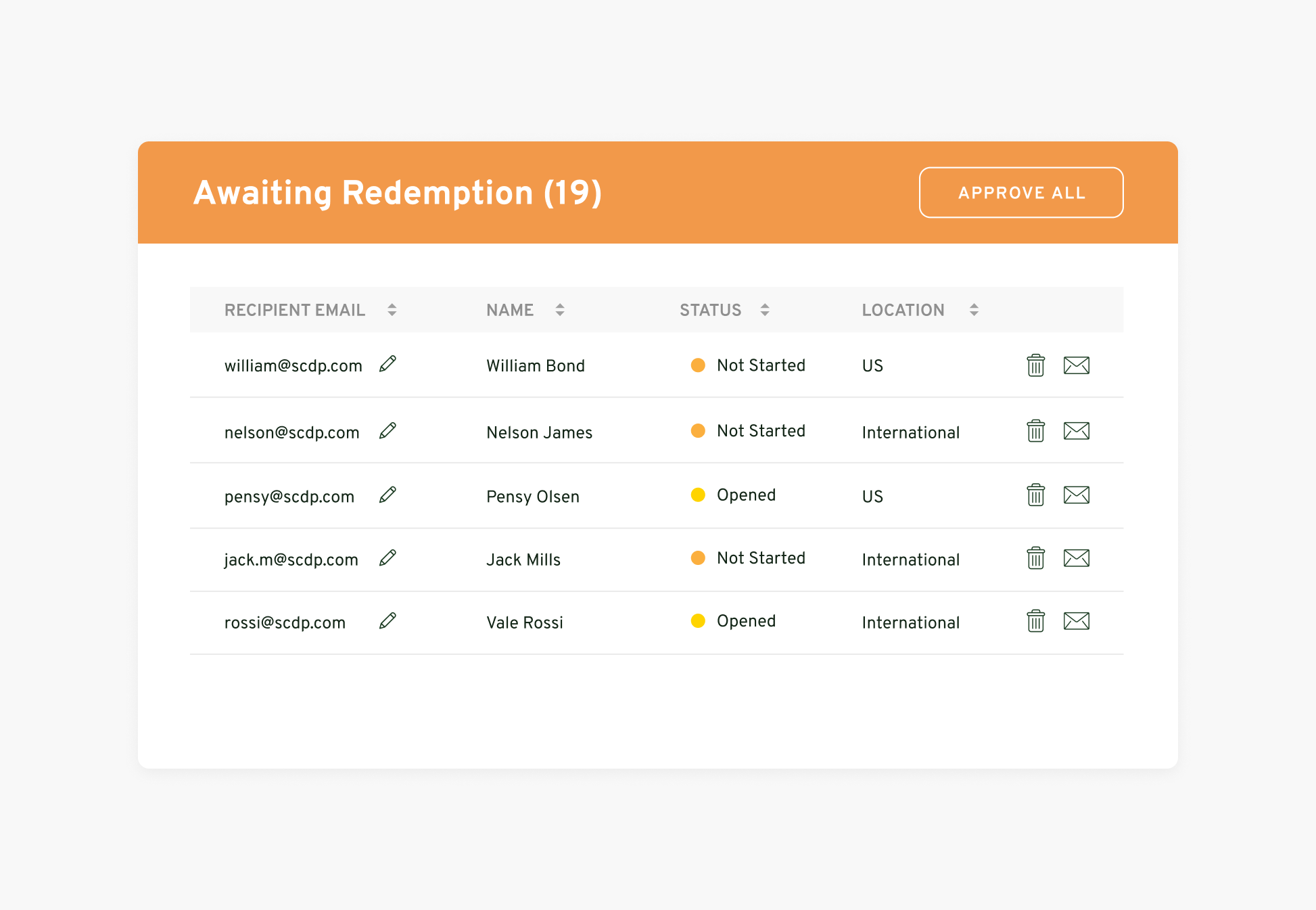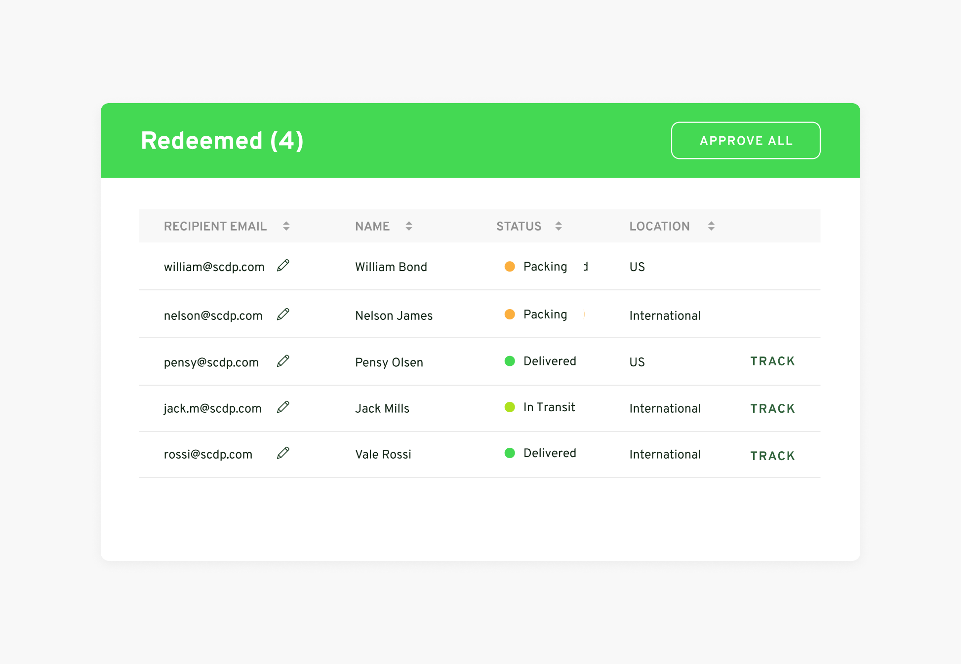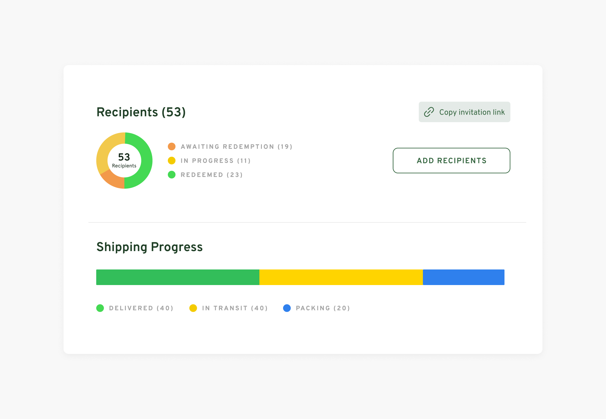 Track redemption, see your recipients' thank you messages, or download itemized receipts to make your accounting team happy.