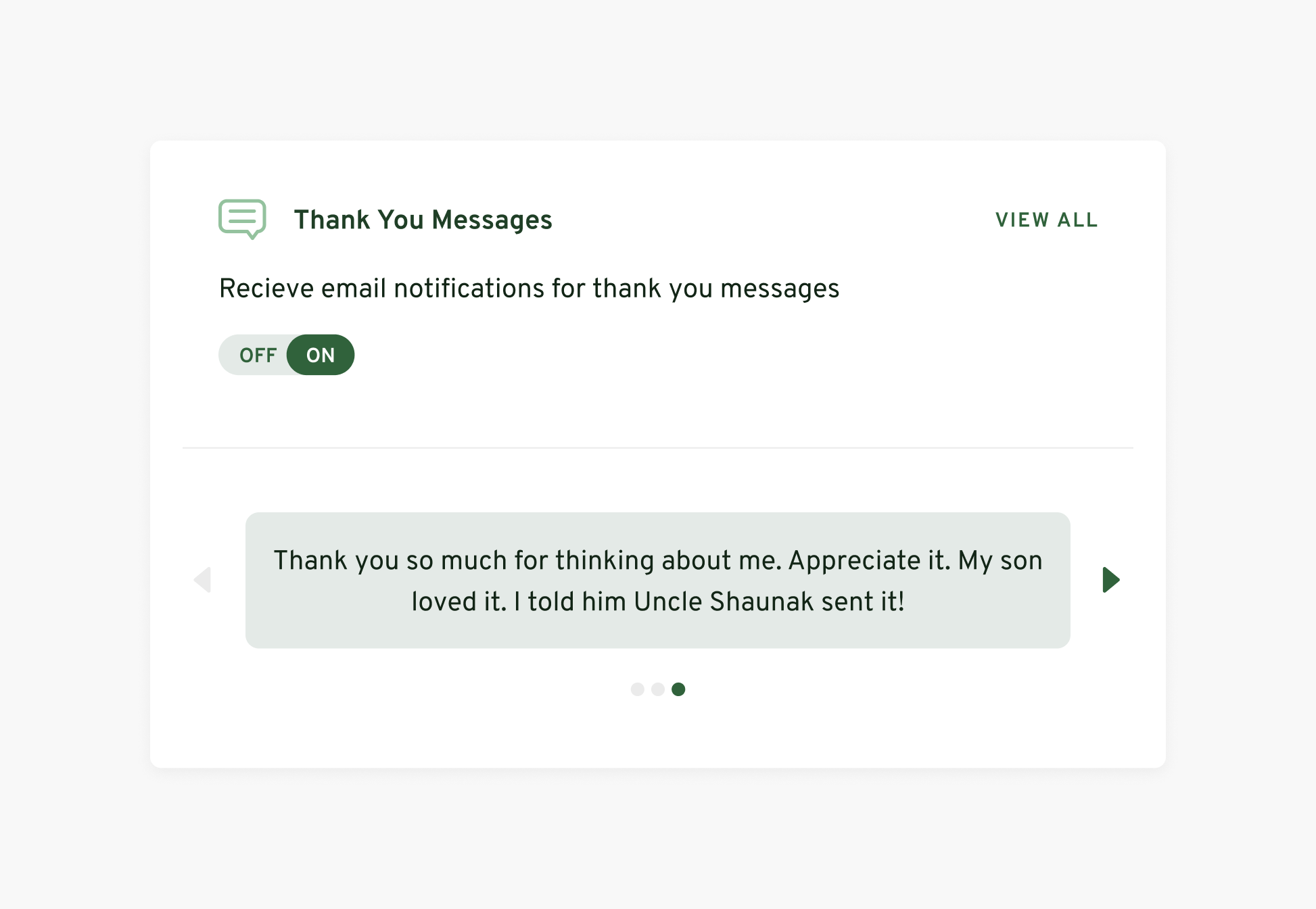 View all the rejected recipients and read all thank you messages from your grateful recipients.