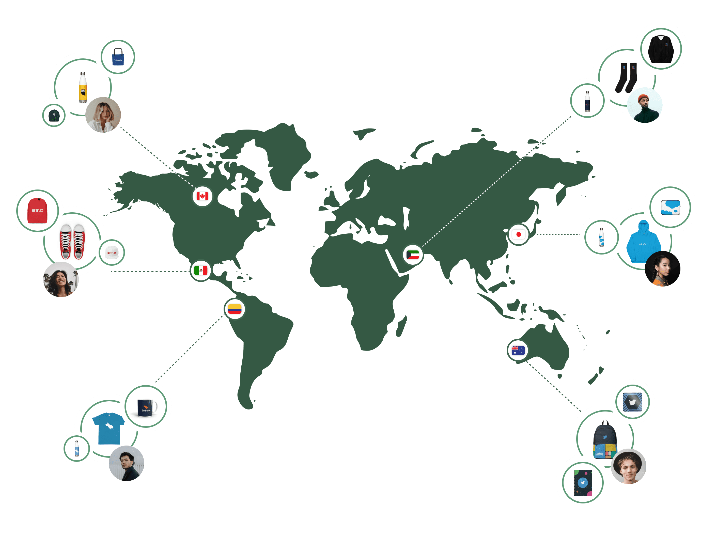 Though far away, your global recipients get to revel in the same experience (and swag) as US recipients. We handle the logistics and can ship to 170+ countries.