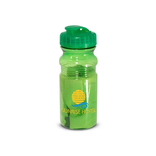 Stay cool on the go with our innovative Cooling Towel In Water Bottle combo. This practical 2-in-1 solution features a high-performance cooling towel neatly stored inside a 20oz translucent sport bottle.