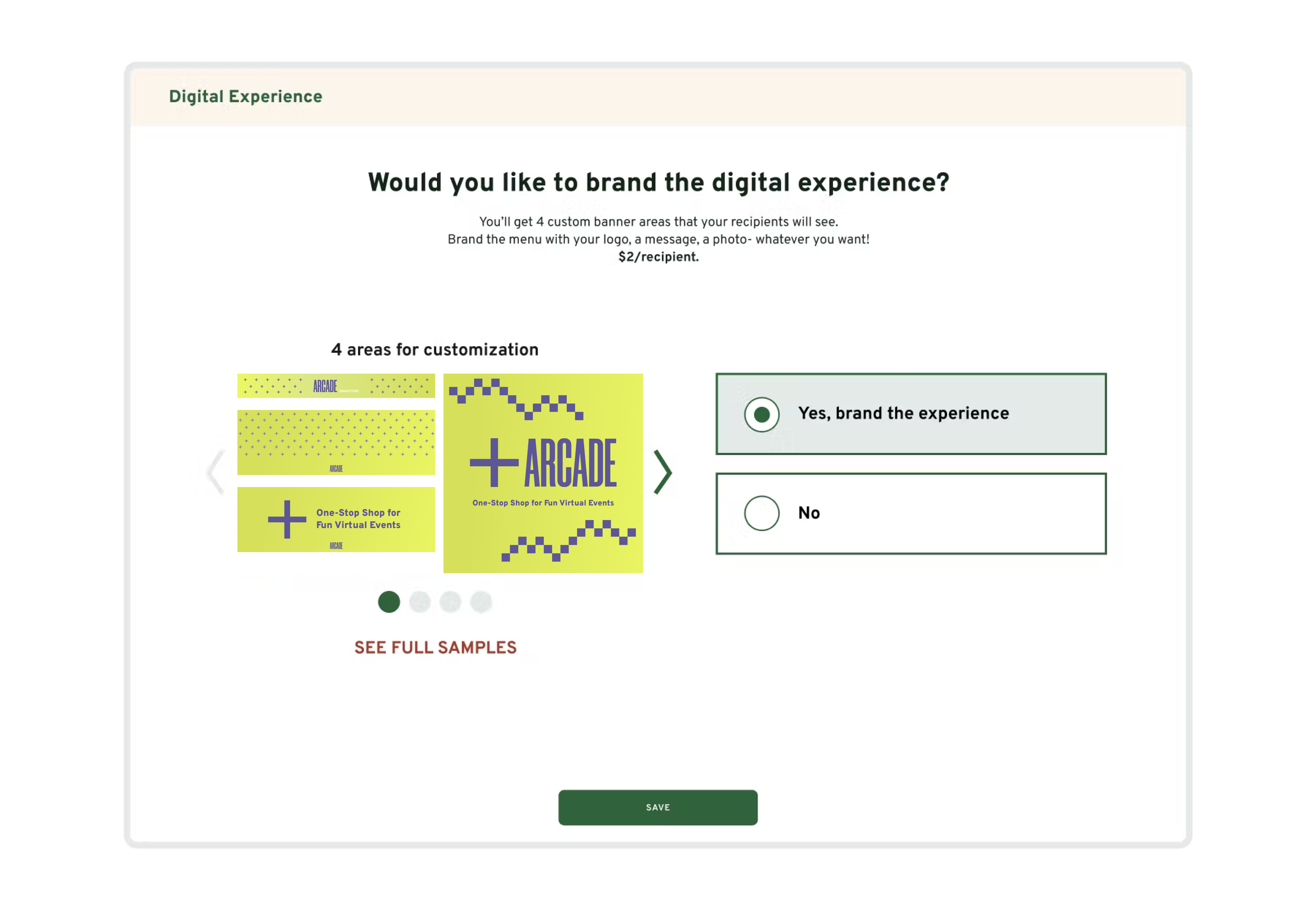 Start your order and select 'yes' when prompted to brand the digital experience.