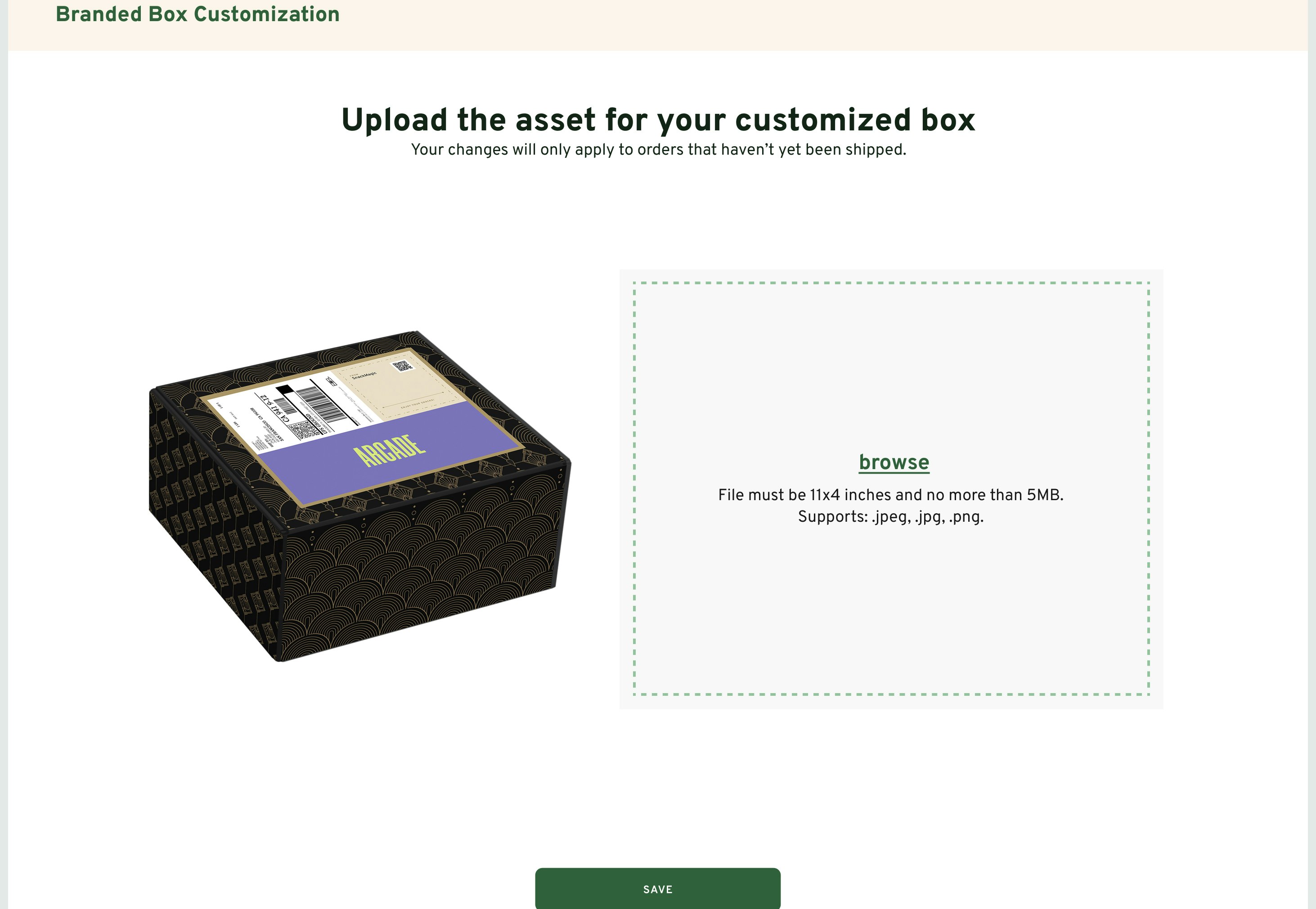 Upload the asset for your customized box from the Treats Dashboard.