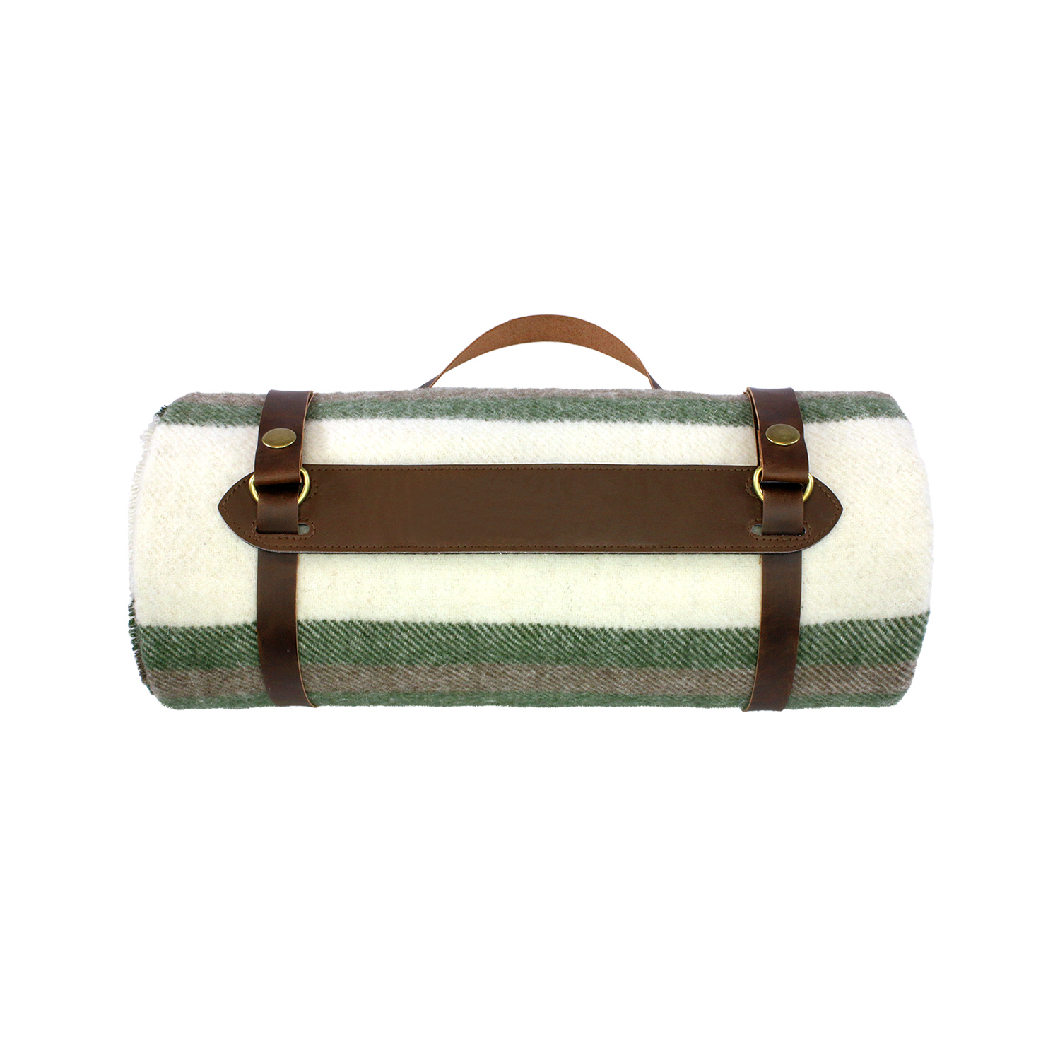 Stay cozy with the Elliston Blanket, crafted from a premium 50% wool and 50% acrylic blend for superior warmth during cold seasons. Each blanket comes with a stylish vegan leather holder featuring an extra long carry strap for effortless portability.