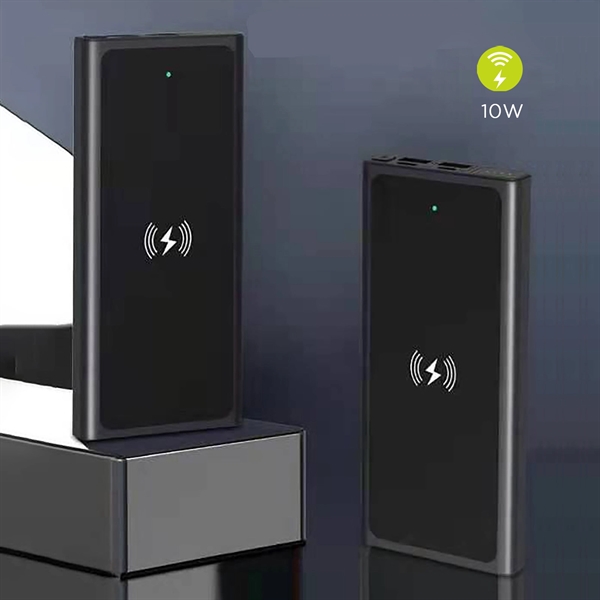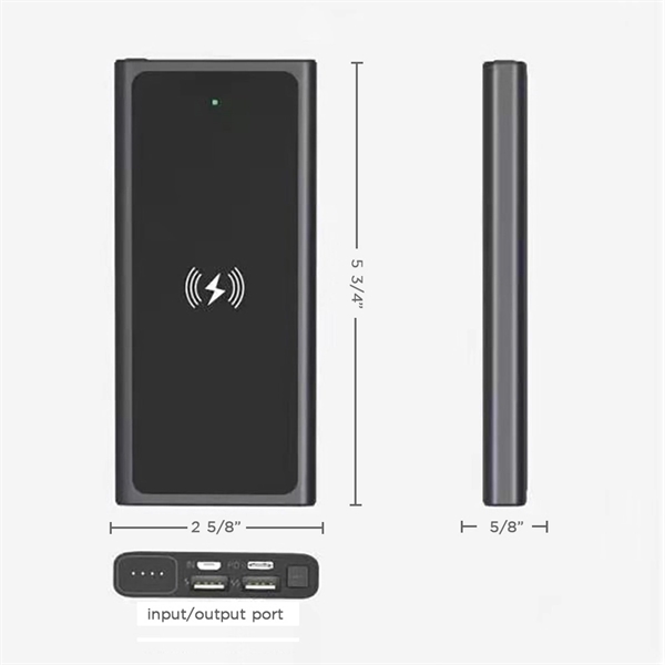 Power up your tech on-the-go with our sleek 10W Wireless Charger with built-in 10000mAh Metal Power Bank. This compact yet powerful accessory (measuring 5 3/4" x 2 5/8" x 5/8") delivers fast wireless charging to all Qi-enabled devices while doubling as a portable power source.