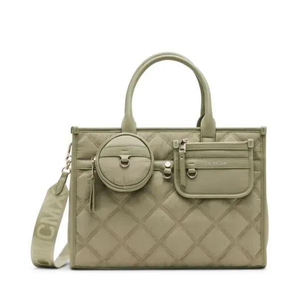 The BTYLER Large Nylon Quilted Tote in Sage combines style with functionality. This versatile bag is designed for those who value organization and flexibility in their everyday carry.