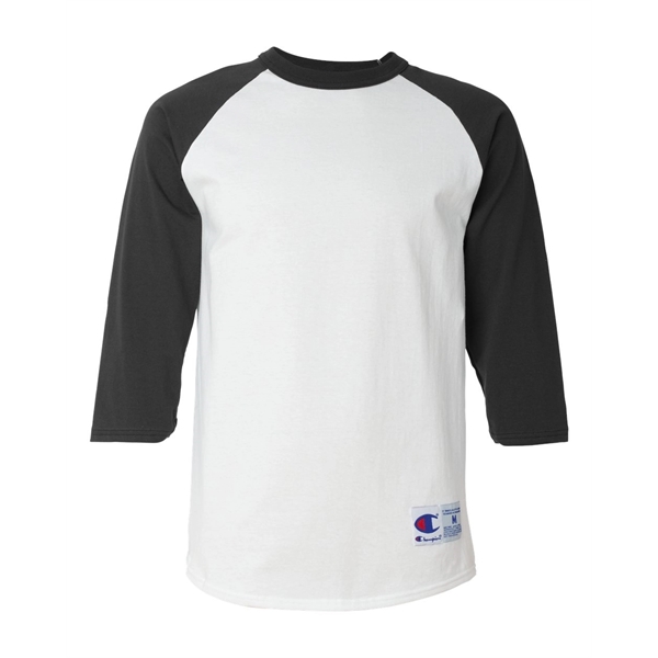 Step up to the plate with the Champion Unisex Raglan Sleeve Baseball T-Shirt. This classic 5.2 oz./yd2 tee is crafted from 100% cotton with premium 20 singles yarn for superior comfort and durability. Featuring distinctive contrast-color three-quarter raglan sleeves and quality double-needle stitching at the sleeves and bottom hem, this shirt combines style with Champion's legendary quality.