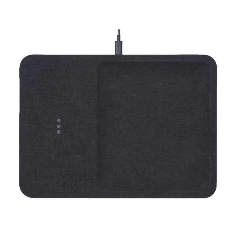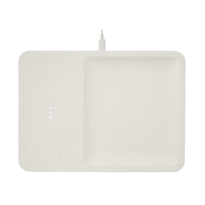 The Courant Essentials Catch: 3 transforms your space with sleek organization and charging capabilities in one elegant solution. Wrapped in premium Belgian Linen with soft-touch ABS finish for enhanced durability, this modern valet tray keeps your everyday items neatly arranged while powering your devices.