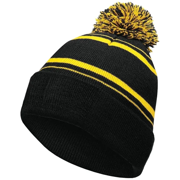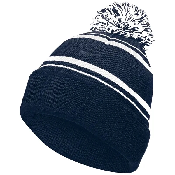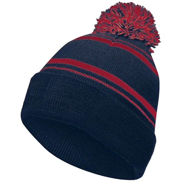 Rally the crowd in style with our Holloway Homecoming Beanie! This classic striped knit cap combines old-school charm with serious warmth for those chilly game days. The retro stocking cap design features a two-color pom pom accent that adds a playful touch to your team spirit ensemble.