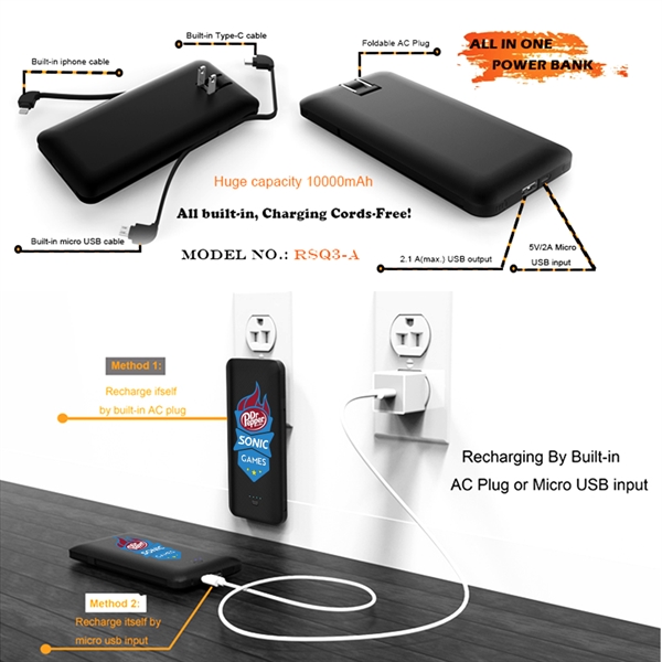 - All-in-One Design: Built-in cables and AC plug eliminate the need for extra accessories