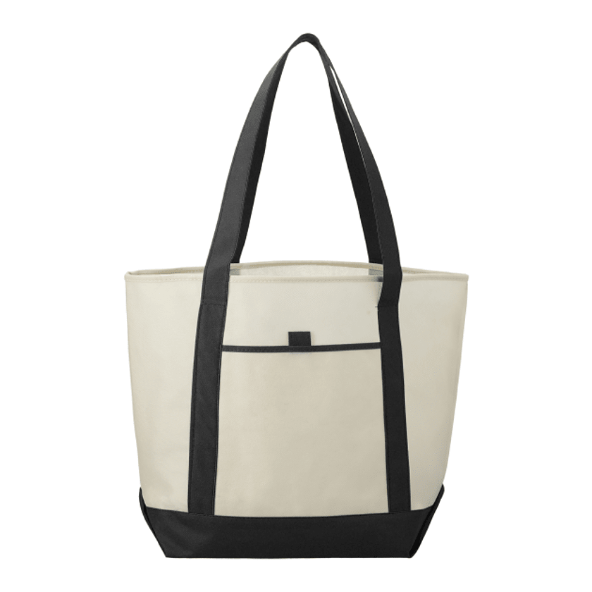 The Lighthouse Non-Woven Boat Tote combines practicality with eco-conscious design. This spacious tote features an open main compartment for all your essentials, plus a convenient front pocket with a pen loop for quick access to smaller items.