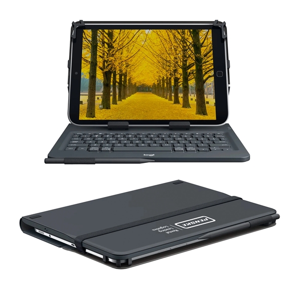 Transform your 9-10 inch tablet into a productive laptop-like setup with the Logitech Universal Folio Tablet Case and Keyboard. This versatile case positions your tablet at the perfect angle for comfortable typing, whether you're at a desk or lounging on the couch.