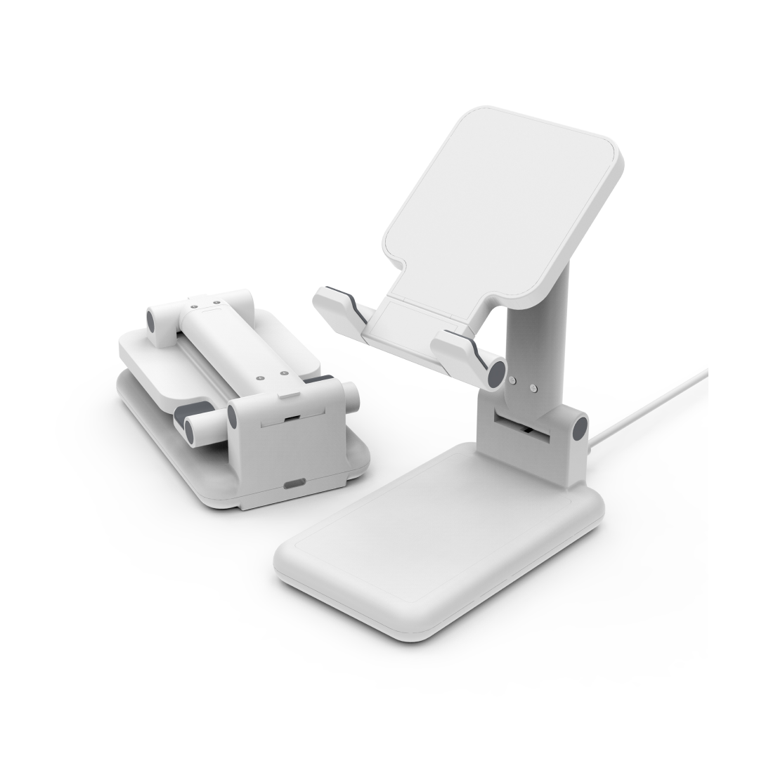 A handy indicator light at the base shows charging status at a glance. Whether you need landscape or portrait orientation, PowerStand adapts to your needs with multiple adjustable angles and heights for comfortable viewing.