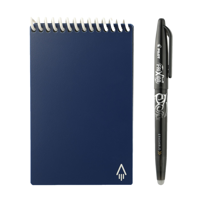 Meet the Rocketbook Mini Notebook Set – your reusable note-taking solution for classroom, office, or personal use. This smart 48-page hardcover notebook features synthetic dotted paper that works seamlessly with Pilot Frixion pens and wipes clean with the included damp microfiber cloth.