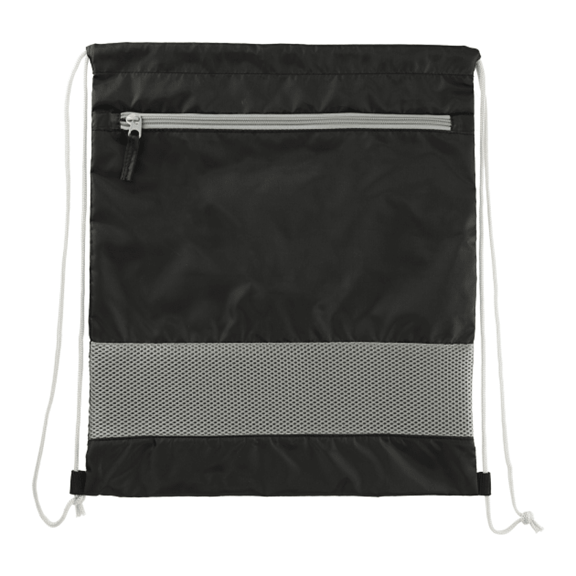 The Sparks Recycled Drawstring Bag combines functionality with eco-friendly design. This practical cinch bag features a convenient front zipper pocket for quick access to essentials, while stylish mesh accents add both visual appeal and breathability.